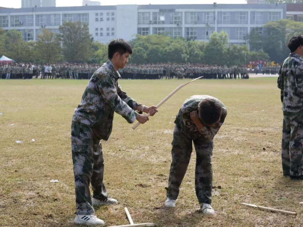队列表演——规范站姿、步伐齐整,每招每式尽显大学生蓬勃朝气。