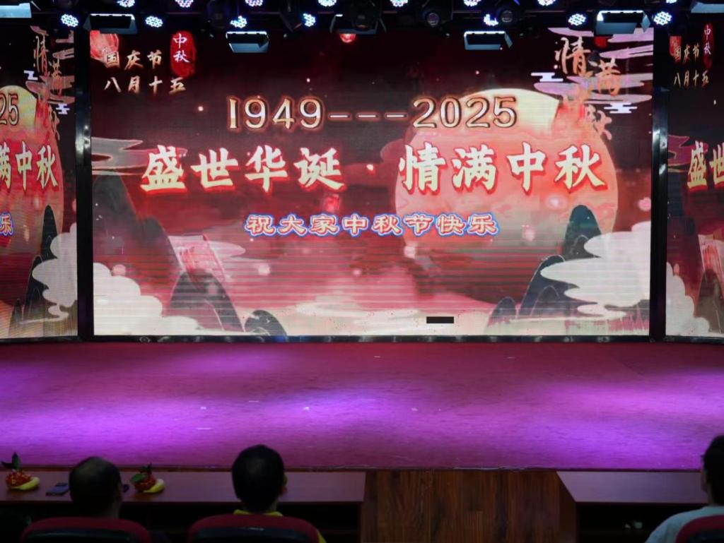 暖场视频的画面里飘扬的国旗与皎洁的明月交相辉映,瞬间点燃现场的节日热情,让双节氛围愈发浓厚。