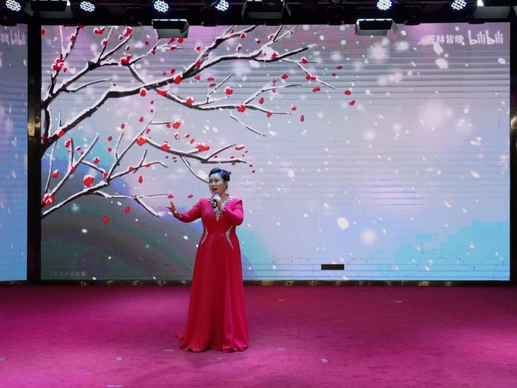 甘甜老师深情演唱了经典曲目《红梅赞》,醇厚歌声中饱含力量,赢得台下阵阵掌声。