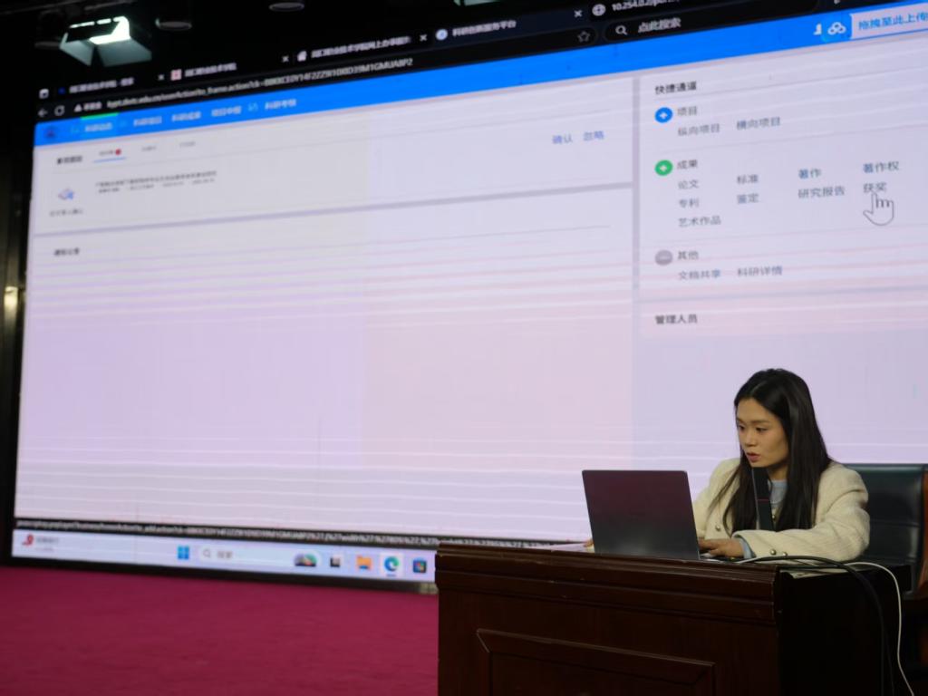副院长耿润详细讲解科研系统平台的成果分类、项目申报等事宜,指出该平台有效提升了工作效率。