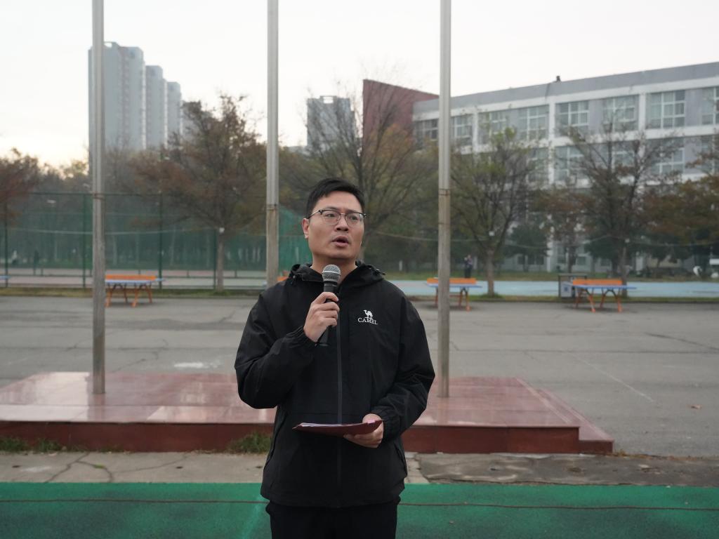 党总支书记王春生回顾了中国百年的苦难历程与奋斗征程。他指出,中国共产党的诞生是历史的伟大转折,正是在党的带领下,人民历经艰辛斗争与不懈建设,不仅绘就了新时代的壮丽画卷,更实现了全民小康的宏伟目标。最后,他呼吁同学们以爱国之情为动力,让青春奋斗与祖国发展同频共振,共赴美好明天。