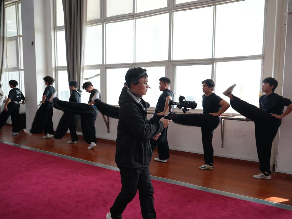 录制开始后,工作人员高效完成设备调试,随即投入拍摄工作。镜头下,身着练功服的同学们全心投入,从一招一式的基本功到韵味十足的唱腔练习,每一个环节都专注投入。在悠扬的伴奏声中,他们将戏曲表演的艺术神韵展现得淋漓尽致。