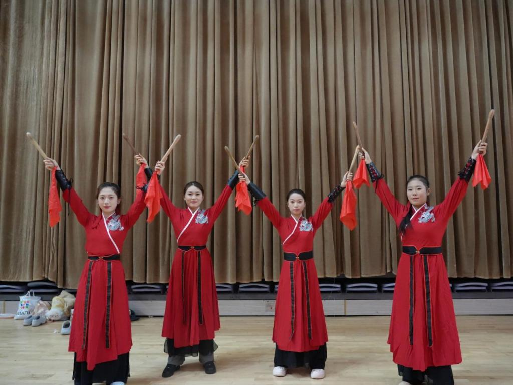 开场节目《鼓舞盛世》率先登场。激昂的乐曲声中,学子们手持鼓槌铿锵起舞,动作整齐划一,步伐精准变换;既展现出利落矫健的身姿,更洋溢着昂扬向上的精神风貌,全场掌声如潮,为演出拉开精彩序幕。