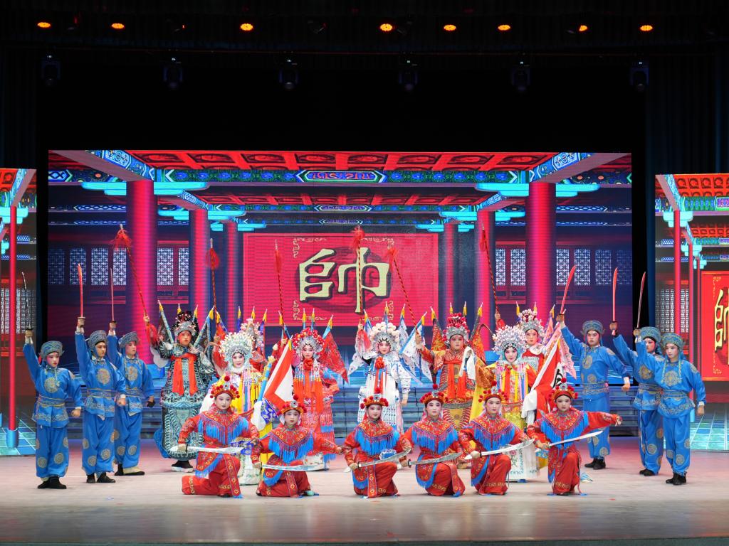 锣声一响,豫剧《穆桂英挂帅》选段惊艳登场。戏曲表演专业师生们身着银红铠甲,以高亢激昂的唱腔和干净利落的身段,生动展现穆桂英的飒爽英姿,让传统戏曲的独特魅力在舞台上绽放光彩,为现场观众带来了一场沉浸式的艺术盛宴。