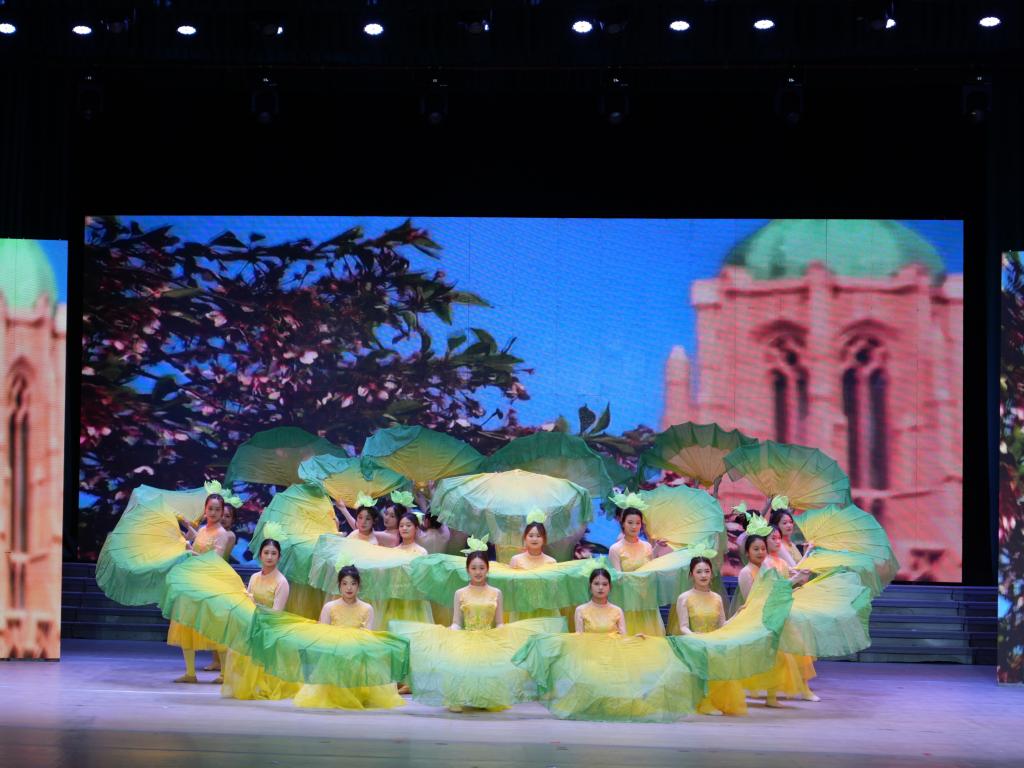 伴随着舒缓悠扬的歌声,表演舞蹈节目《春之歌》的舞者们登上舞台,同学们身姿优雅、舞步轻盈,将春天的勃勃生机与温婉诗意演绎得淋漓尽致,整个舞台宛若一幅灵动的春日画卷,深深吸引了全场观众的目光。