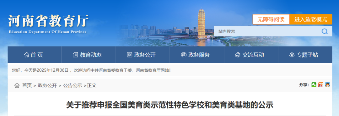 此次推荐工作由河南省教育厅统一组织,经材料审核与专家评审,最终确定192所学校和10个中华优秀传统文化传承项目进入拟推荐名单。williamhill英国官网凭借在美育课程建设、校园文化营造、艺术实践活动等方面的扎实工作和突出特色,在全省众多高校中脱颖而出,跻身推荐行列。