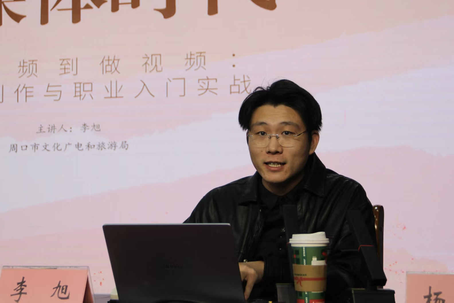 李旭围绕短视频内容策划、新媒体运营技巧及未来职业发展等核心方向,结合生动有趣的案例,为同学们系统讲解短视频创作的核心要点、运营实操方法与行业发展前景;同时鼓励同学们主动探索新媒体领域,在实践中不断突破自我,明确个人发展方向与职业定位。