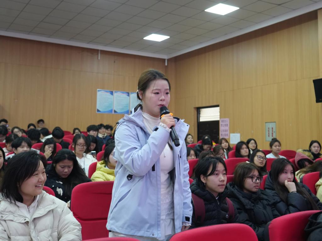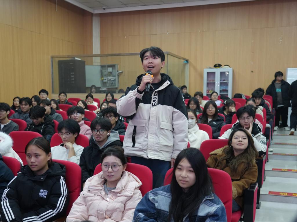 朱永亮老师以“诵读中的声音控制与情感表达”为主题开展专题分享,他结合巴金《我的心》等经典篇目进行现场示范教学,逐句拆解诵读中语调起伏、停顿节奏的把控技巧,细致讲解声音力度调节与情感传递的适配方法;并邀请在场学子进行实践展示,针对性指正发音规范、情感表达精准度等问题。