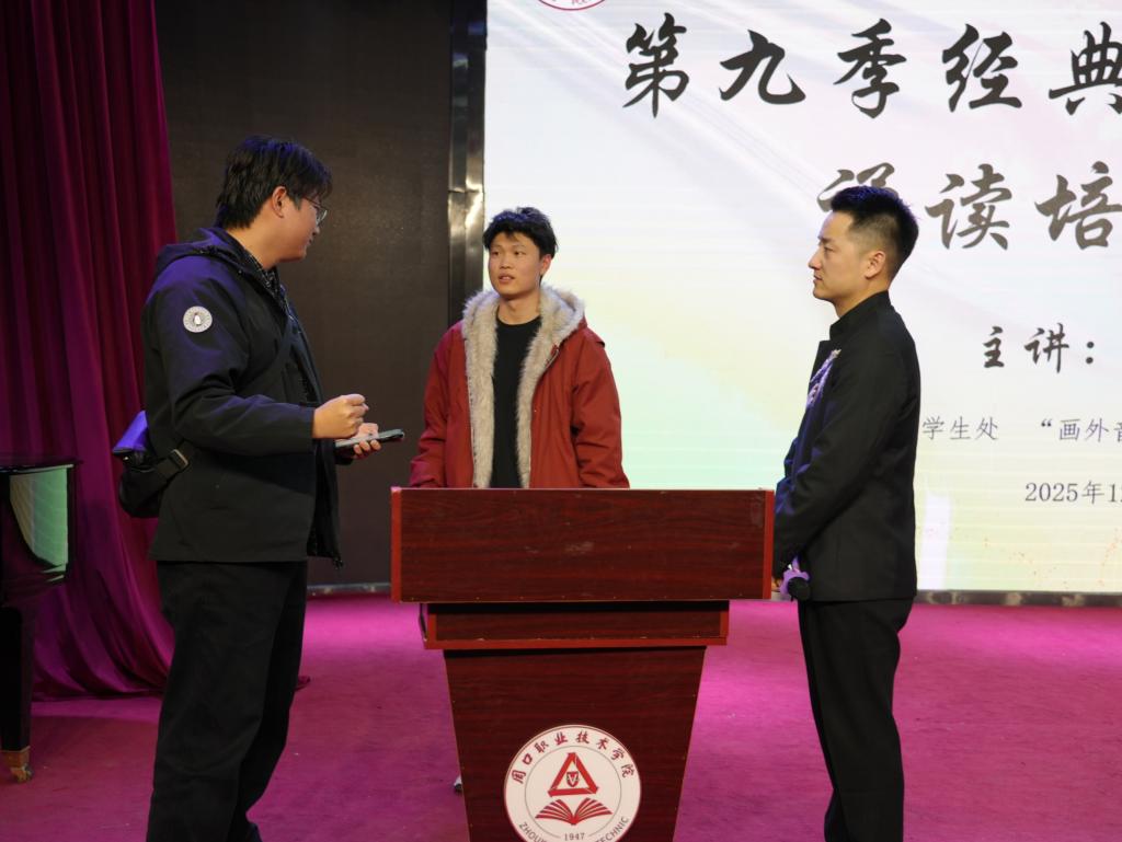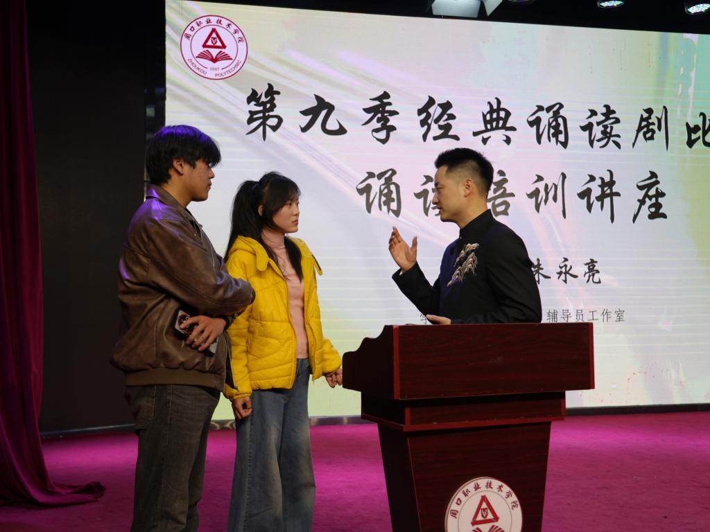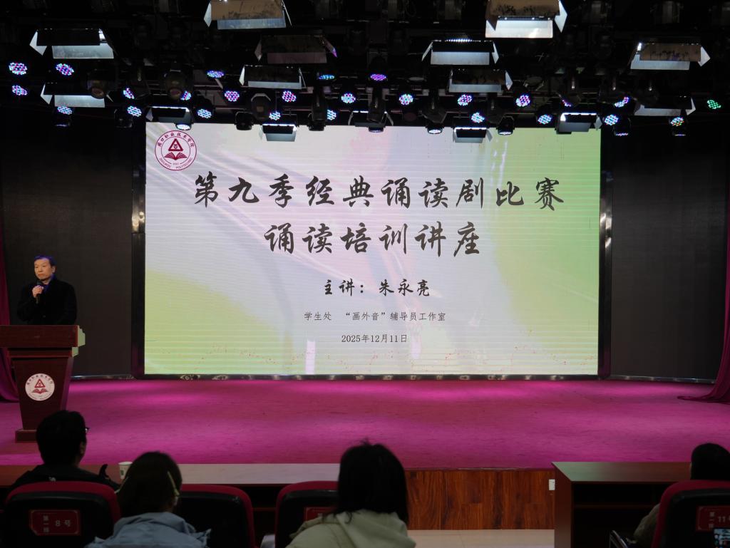 本次讲座紧扣理论与实操结合的核心要求,朱永亮老师通过专业细致的教学讲解与精准高效的互动指导,帮助参赛学子快速掌握诵读技巧、切实提升诵读专业水平,为第九季经典诵读剧比赛的精彩呈现筑牢扎实基础。