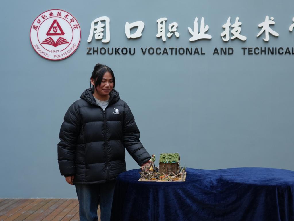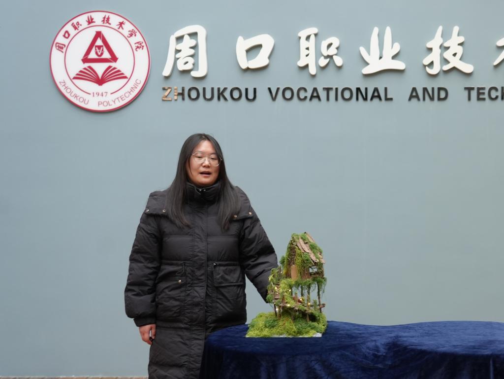 24级学前教育02班霍瑞晗以快递箱、枯枝为骨,借人造苔藓织就绿意,将校园角落的废弃材料重塑为森系小屋,让本会闲置的“余物”重获生机,在苔藓裹覆的肌理里,藏着她的巧思:把废墟酿成新生,以“环保重构诗意”的方式,让废弃之物生长出自然的温柔。