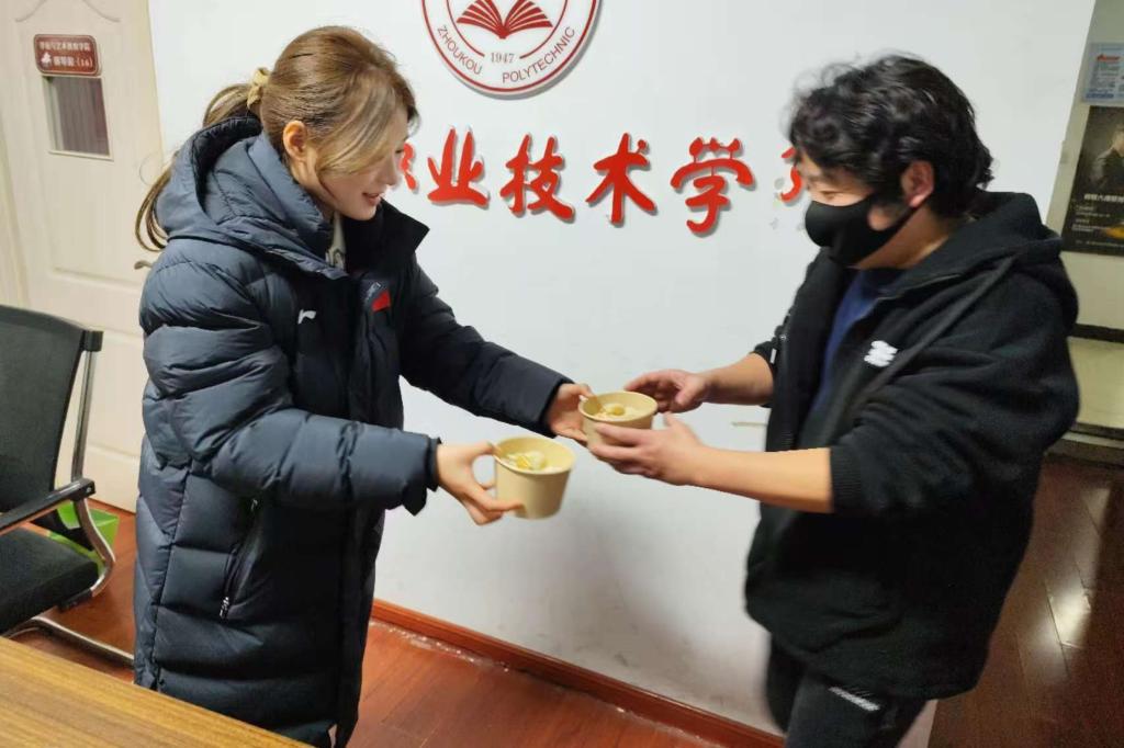 同学们为第九季“经典照亮人生”经典诵读活动的排练指导老师送上热腾腾的饺子,并致以诚挚的感谢与崇高的敬意。