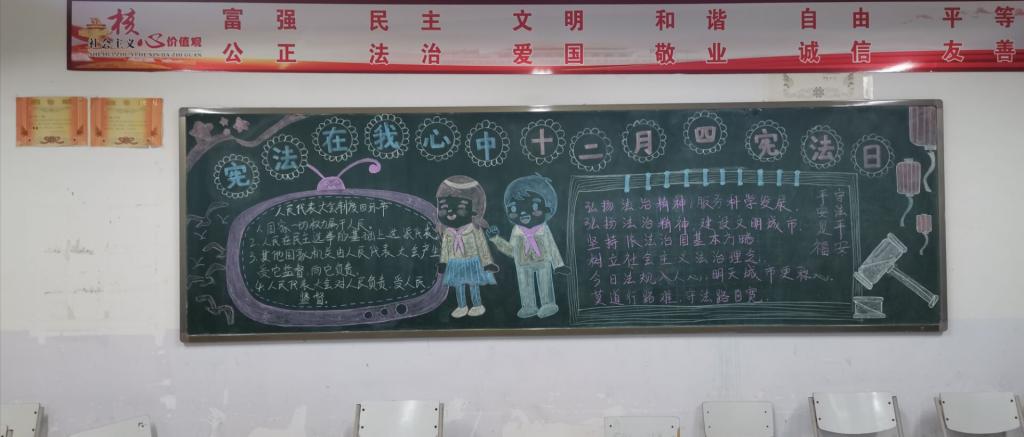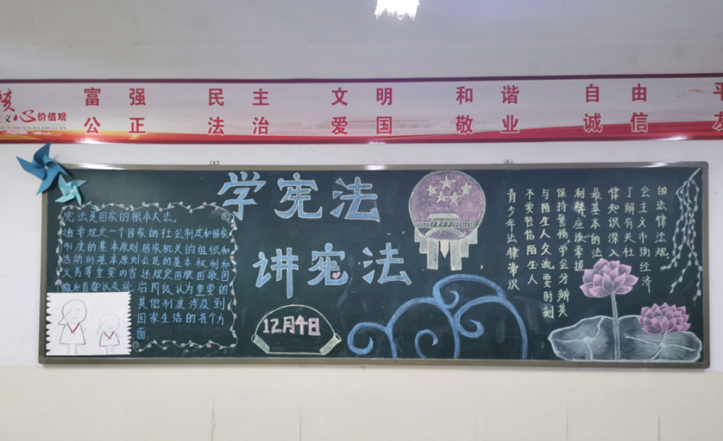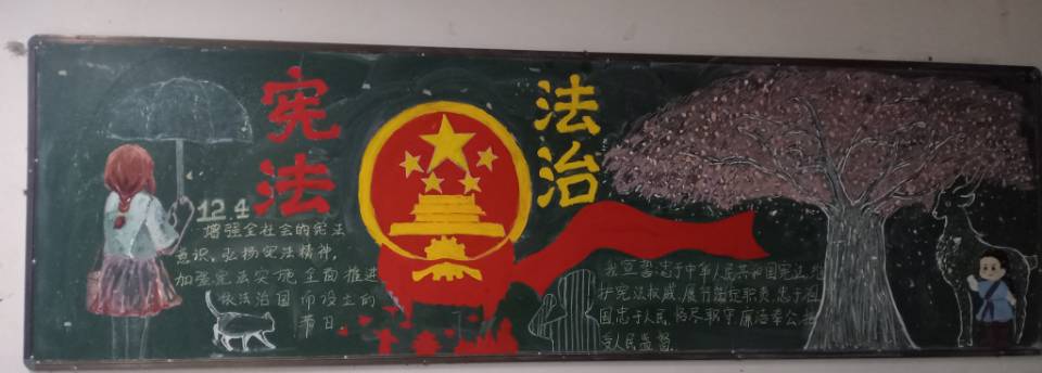 12月4日是国家宪法日,为引导同学们做知法守法的好公民,我院按照学校工作部署,组织各班开展了以宪法为主题的黑板报宣传活动。同学们设计出了精美的“学宪法、讲宪法”主题宣传板报,同时,各班结合校情和学生的生活实际开展主题教育,结合自身实际交流对宪法条文的认识理解。