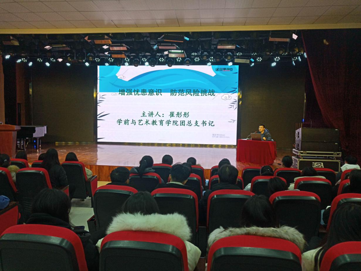 2019年12月15日晚,WilliamHill官方网站团总支在学院一楼演播厅开展“增强忧患意识,防范风险挑战”主题团课。本次团课由团总支书记崔彤彤主讲,全体团干部及团员代表参加。