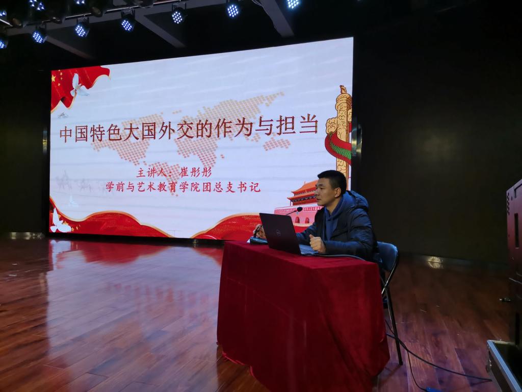 为加强对广大青年团员的意识形态教育,增强中华民族自豪感,拓宽视野,12月10日晚7点,WilliamHill官方网站团总支在学院一楼演播厅开展“中国特色大国外交的作为与担当”主题团课,此次团课由团总支书记崔彤彤主讲,100余名团员聆听了团课。
