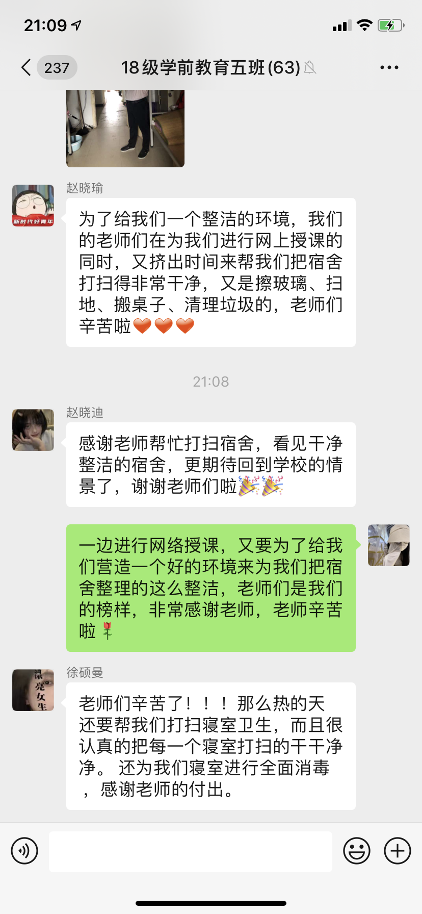 得知领导老师亲自走进宿舍打扫卫生,同学们纷纷表达自己的感想和感谢,这些在生活中看似平常的小事,却给即将返校的同学们带来了温暖。