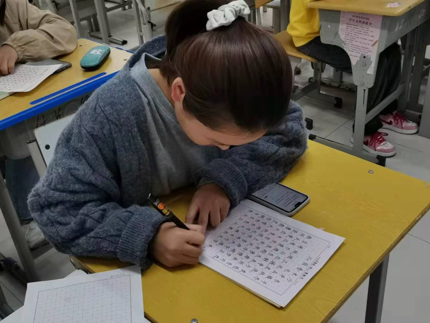 为弘扬中华优秀传统文化,进一步普及规范汉字的书写。WilliamHill官方网站于10月7日下午在教室举行硬笔字书法大赛。