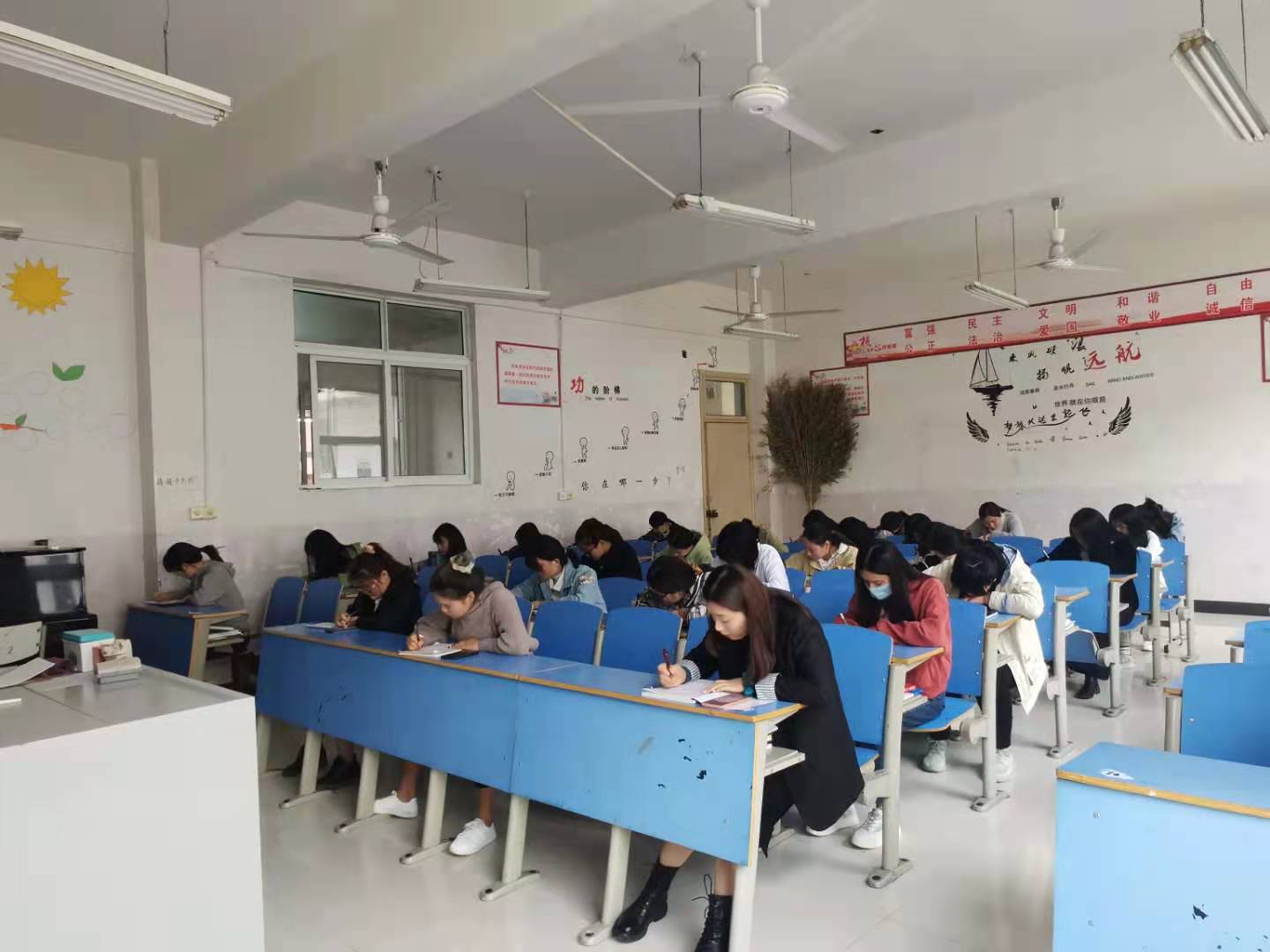 比赛现场,参赛者们以良好的精神状态,用心书写每一个笔画、每一个汉字。所完成的作品笔画流畅,结构匀称,整体美观。比赛结束后,由学院团总支对所有作品进行了认真地评比。