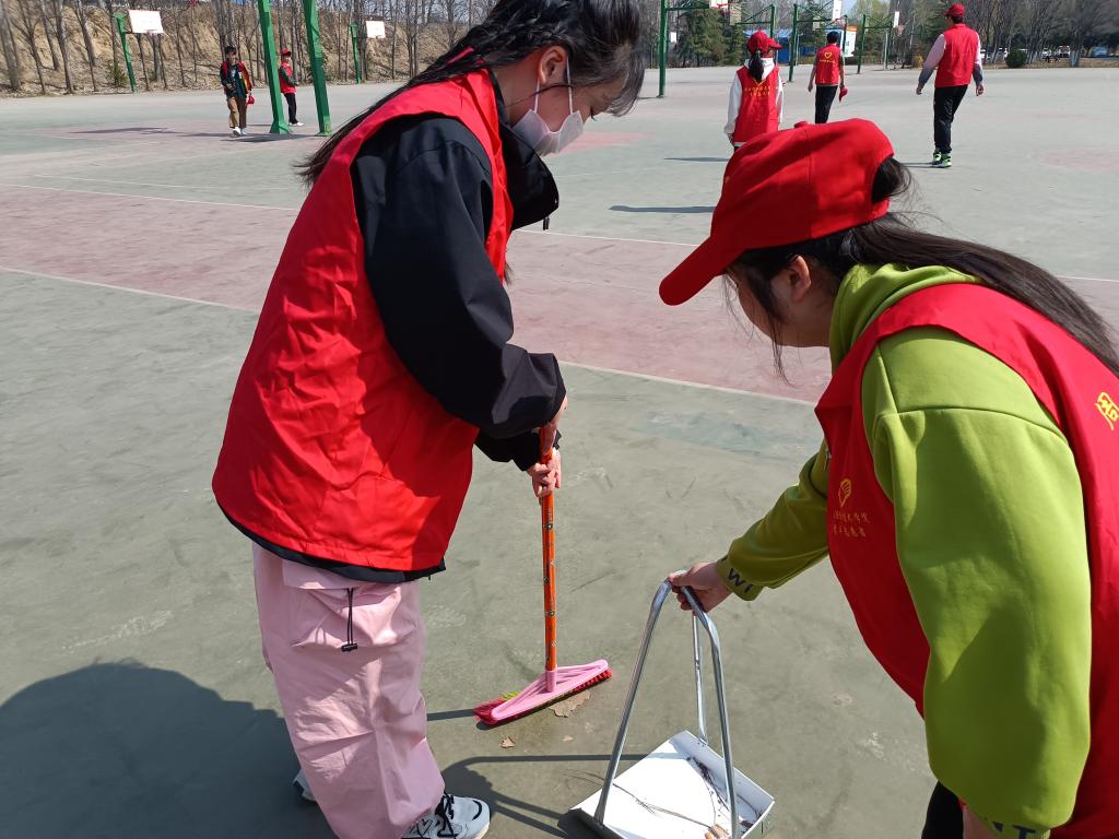 活动中,志愿者们分工合作,带着扫帚,夹子等工具,对校园操场、篮球场、小河边、绿化带等区域进行环境卫生清理。在大家的共同努力下,校园卫生得到有效清理,校园环境面貌也更加亮丽。