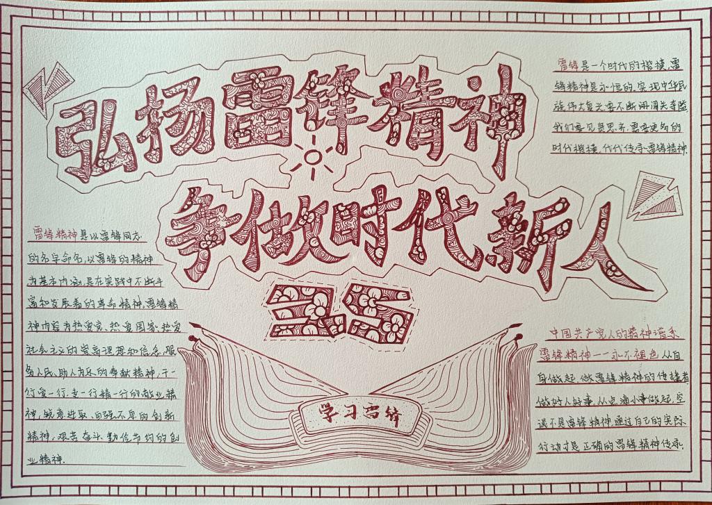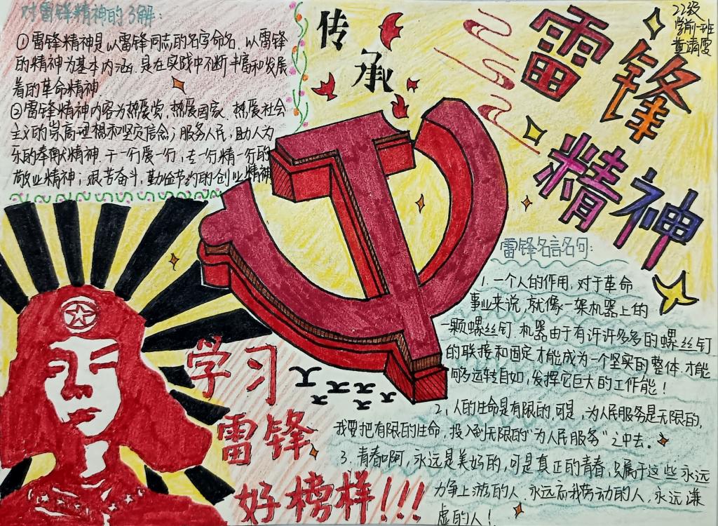 为深刻把握雷锋精神的时代内涵,让雷锋精神在新时代绽放更加璀璨的光芒,培养当代青年高度社会责任感和良好的精神面貌,3月12日,WilliamHill官方网站开展弘扬雷锋精神主题手抄报系列活动。