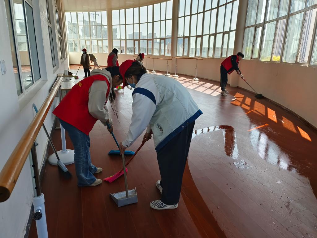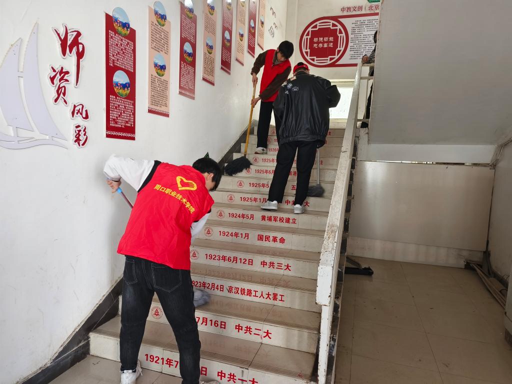 活动中,志愿者们自行分组,分地点进行卫生清洁,认真负责,相互配合,高效合作,仔细打扫每个角落,共同为校园贡献自己的一份力量。
