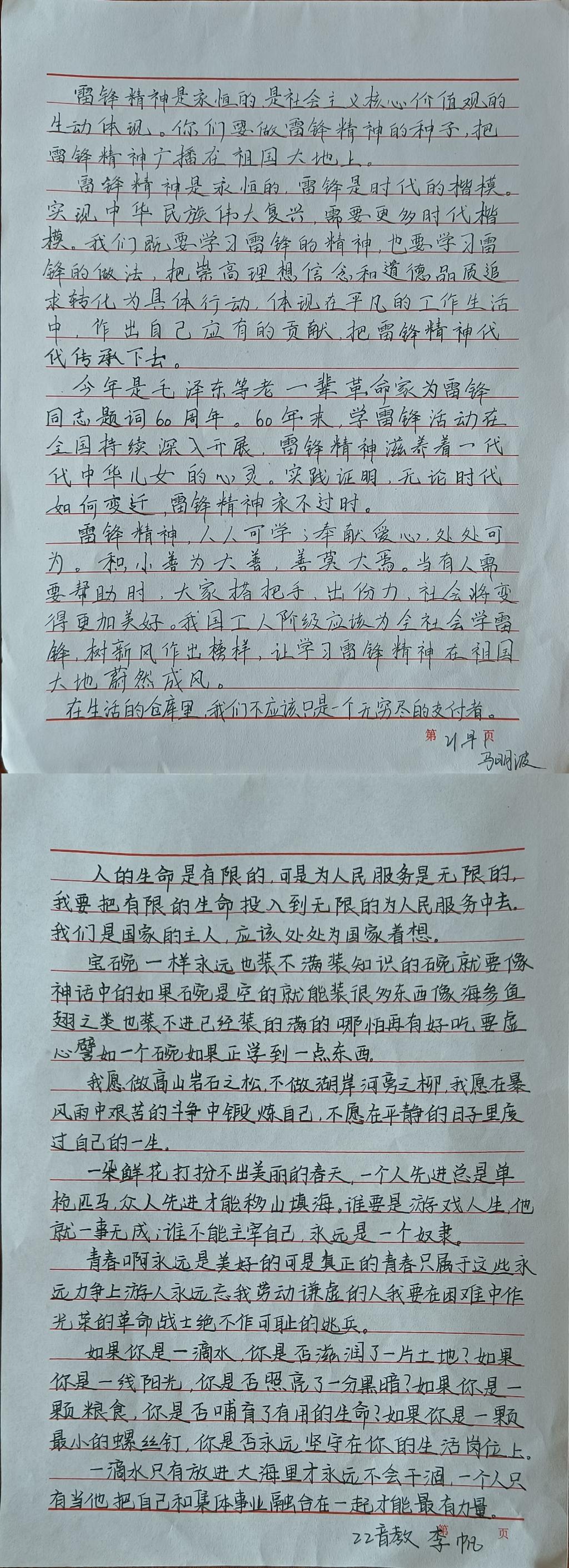 本次书法活动分设硬笔和毛笔等形式,同学们一丝不苟,将身心融于笔端,用笔赞美心中榜样,书写青春理想,用书法的形式,书法的意境,升华对雷锋精神的理解。