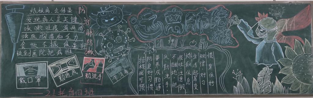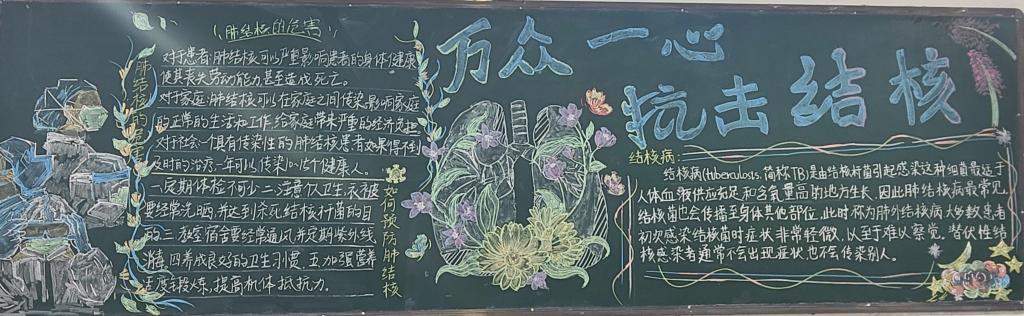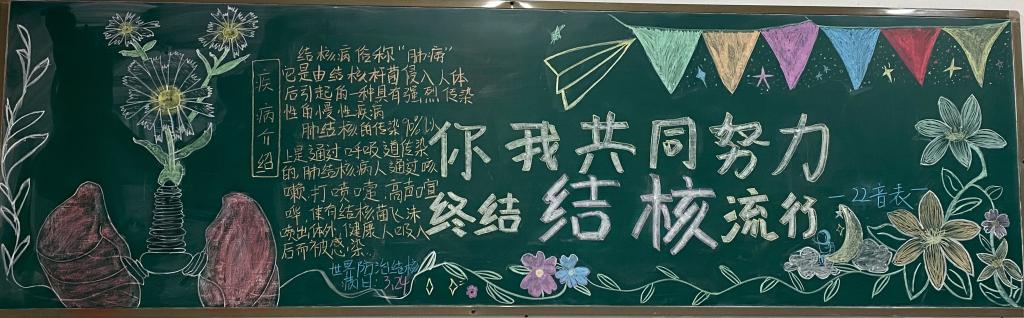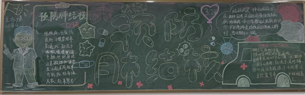 为深入开展结核病防治专题宣教,向广大青少年普及结核病预防知识,共同呵护青少年身体健康,提高学生防范意识,3月27日,WilliamHill官方网站开展“你我共同努力,终结结核流行”预防结核病主题黑板报宣传教育系列活动。