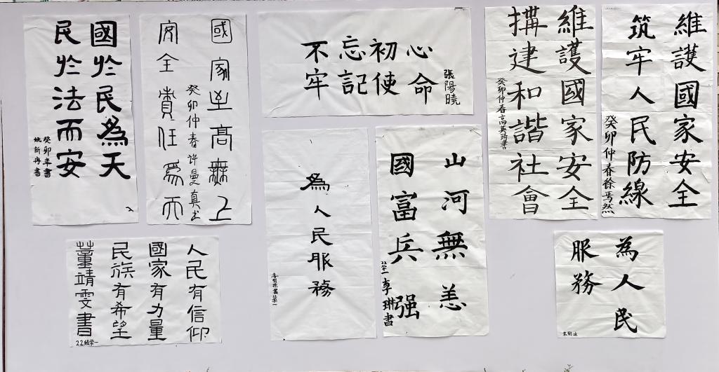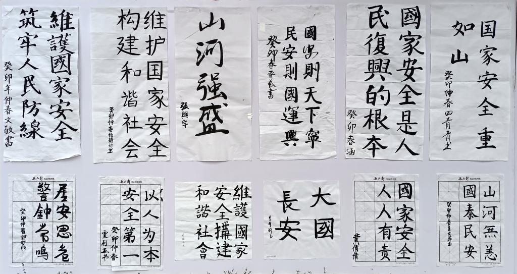 为宣传贯彻党的二十大精神,深入践行总体国家安全观,将普及国家安全知识与提升学生审美和人文素养相结合,第八个“4·15”全民国家安全教育日来临之际,在学院一楼对优秀国家安全教育主题书画作品进行集中展示。