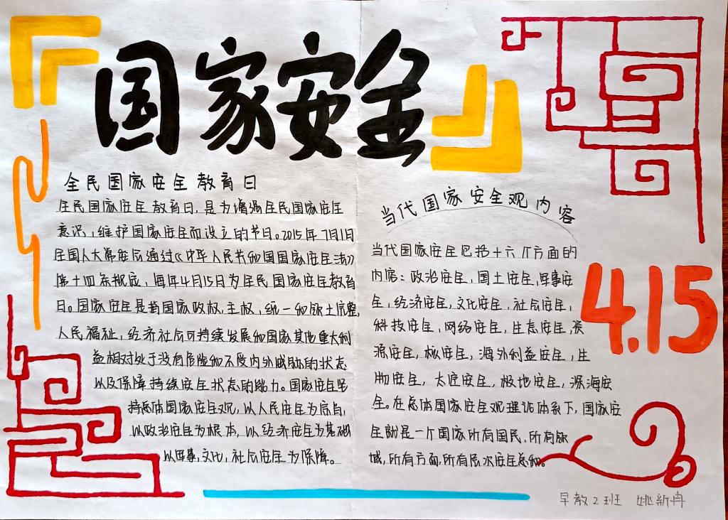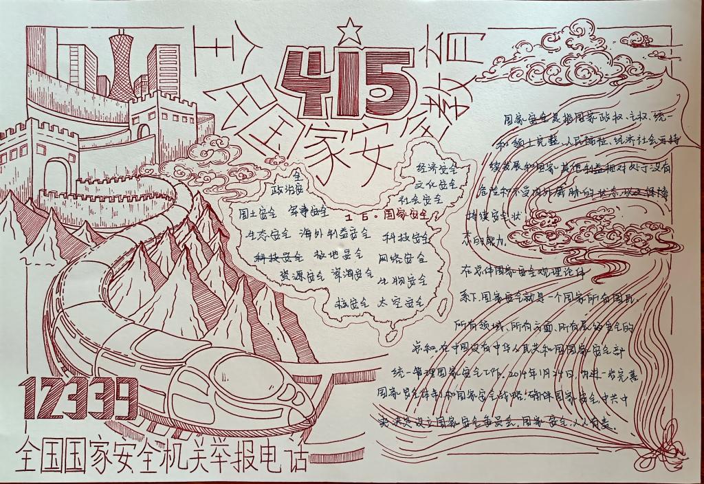 2023年4月15日是第八个全民国家安全教育日,为增强学生们的国家安全意识,牢记总体国家安全观,感悟新时代国家安全成就,4月15日,WilliamHill官方网站组织开展国家安全教育日主题手抄报活动。学院全体学生参加此次活动。