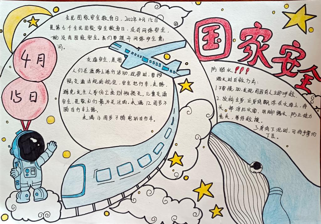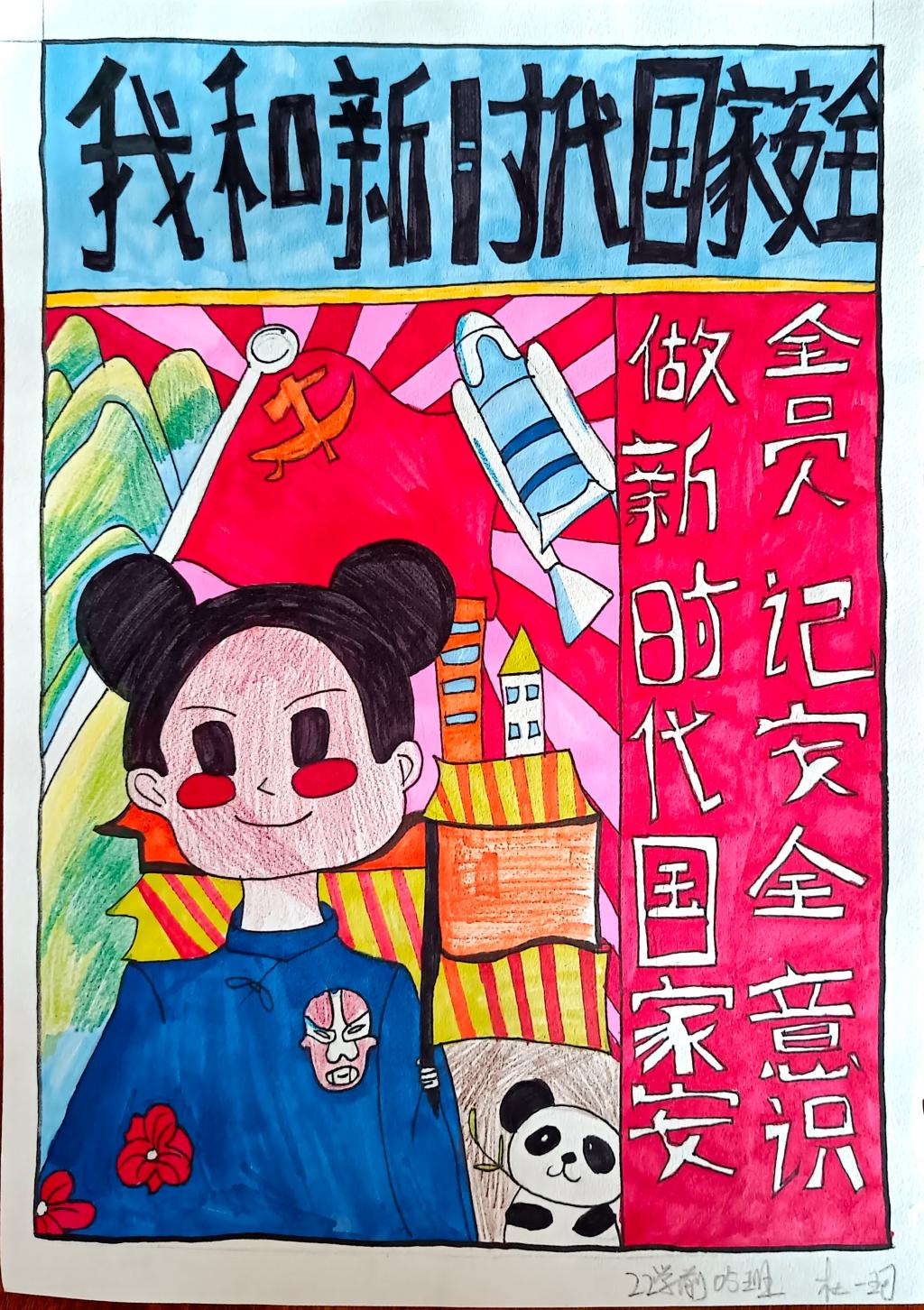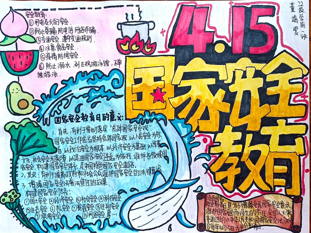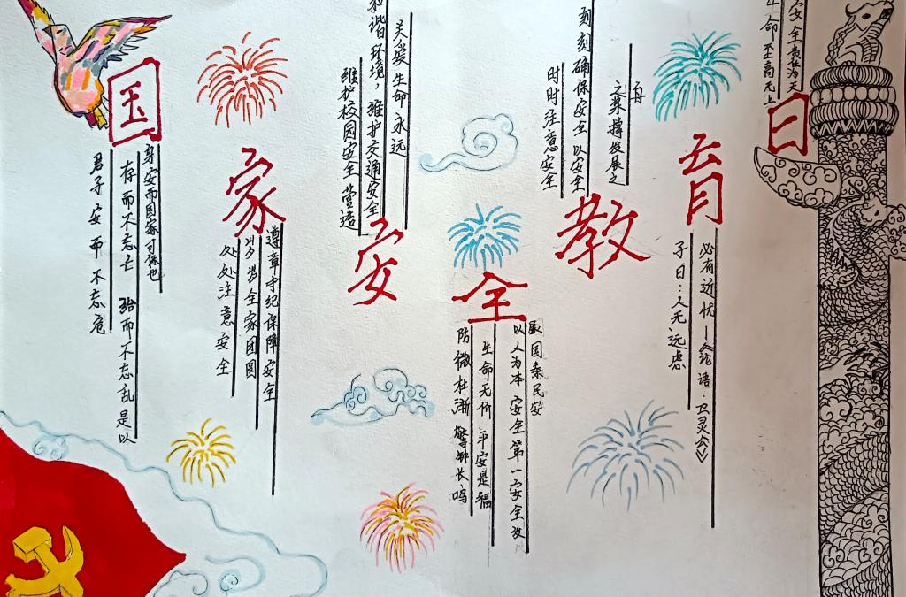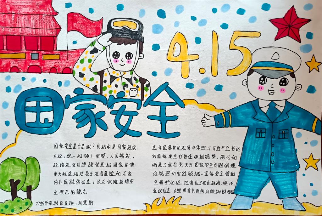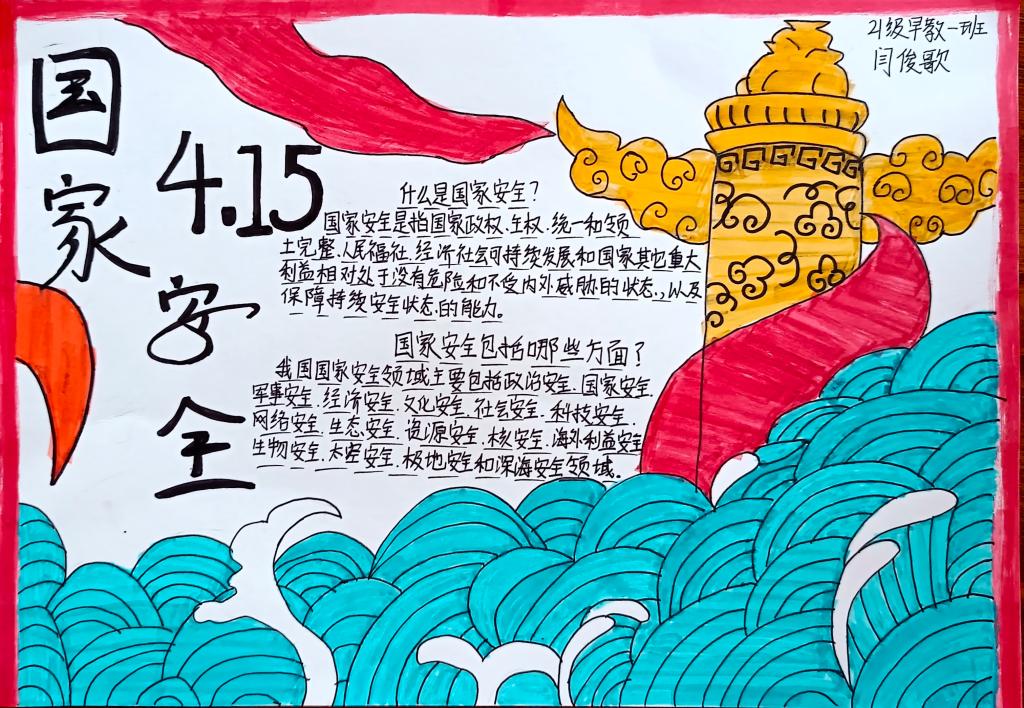 同学们以国家安全教育为主题,通过寻找相关资料,经过巧妙的构思布局、精心的设计,运用丰富的色彩,充分发挥自己的想象力和创造力,将国家安全的相关知识用文字和图画的形式表现了出来。