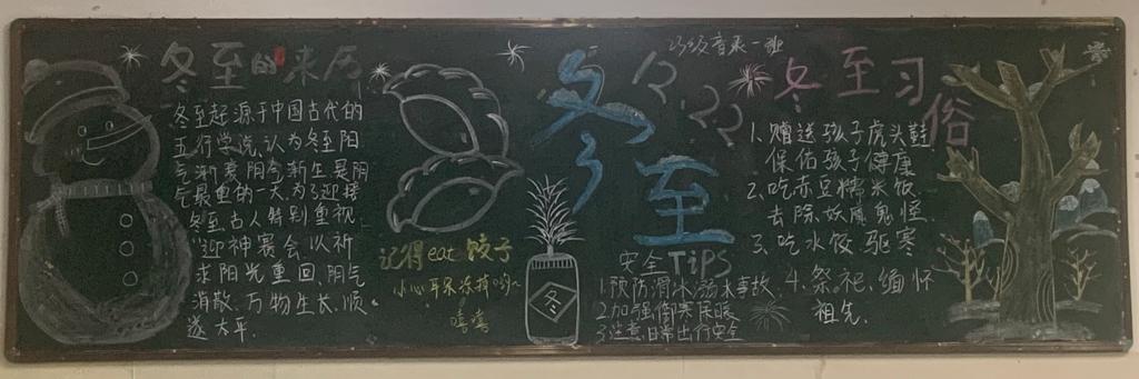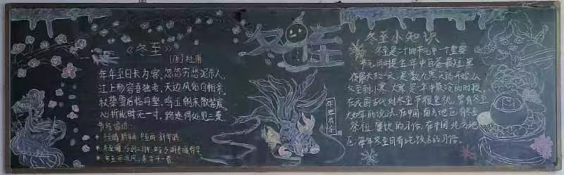通过本次主题黑板报活动,让同学们更深入的了解到冬至这一传统节日。作为青年一代,更应当有高度的文化自觉,以实际行动担负起弘扬中华优秀传统文化的使命。