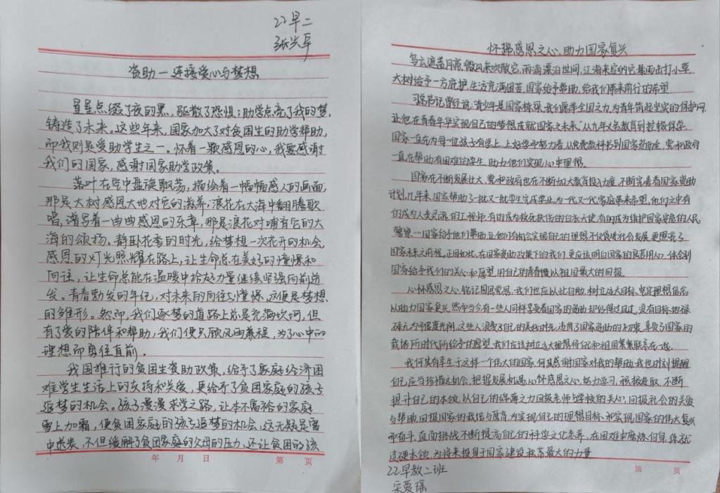 在此次征文活动中,学院学生积极响应,踊跃参与,征文作品充分阐明了国家资助政策为学生带来的巨大变化,展现出资助育人的重要意义,下面让我们一起来看看优秀征文吧!