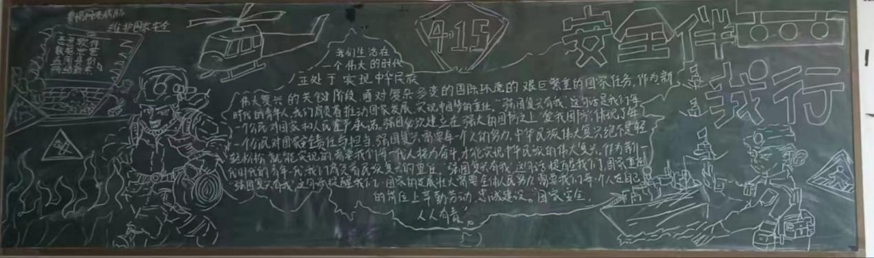 本次主题黑板报活动提高了我院师生对国家安全的认识。我院将以此次活动为契机,积极了解、宣传有关全民国家安全教育日的知识,积极弘扬爱国主义精神,推动校园安全文化建设,将国家安全教育融入到学院师生日常生活中。