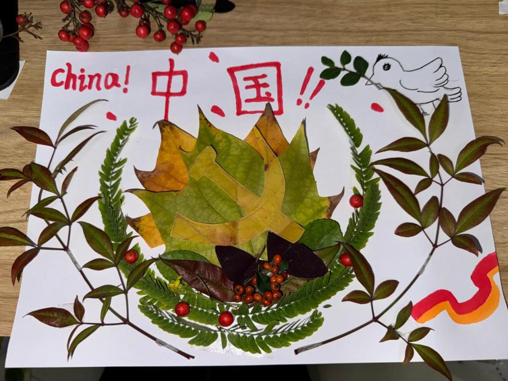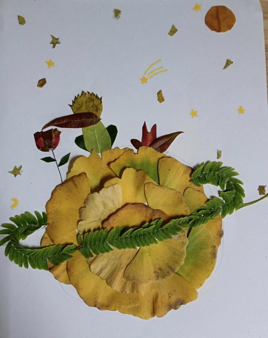 在创造过程中,同学们纷纷展开想象的翅膀,发挥自己的创意,将秋叶作为画材,制作出独属于自己的画作,他们所使用的每一片落叶都承载着对秋季的美好记忆。下面就来看看同学们的作品吧!