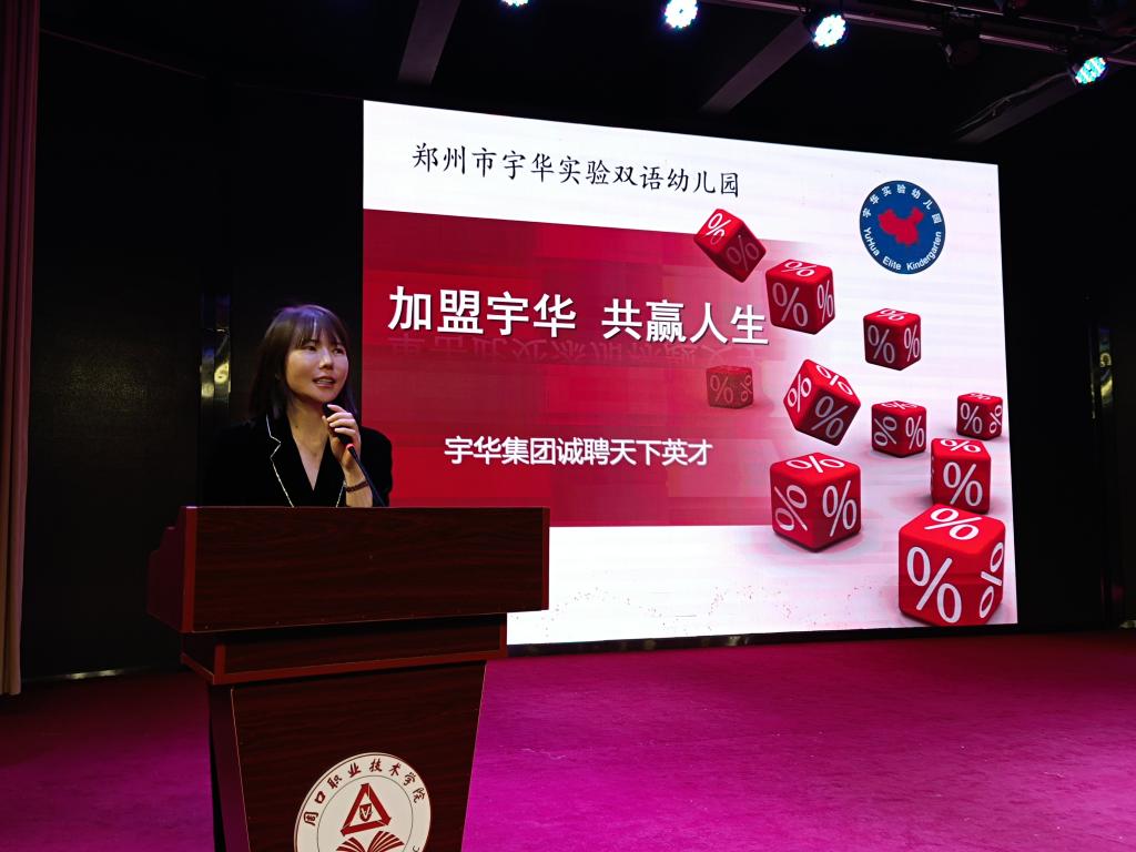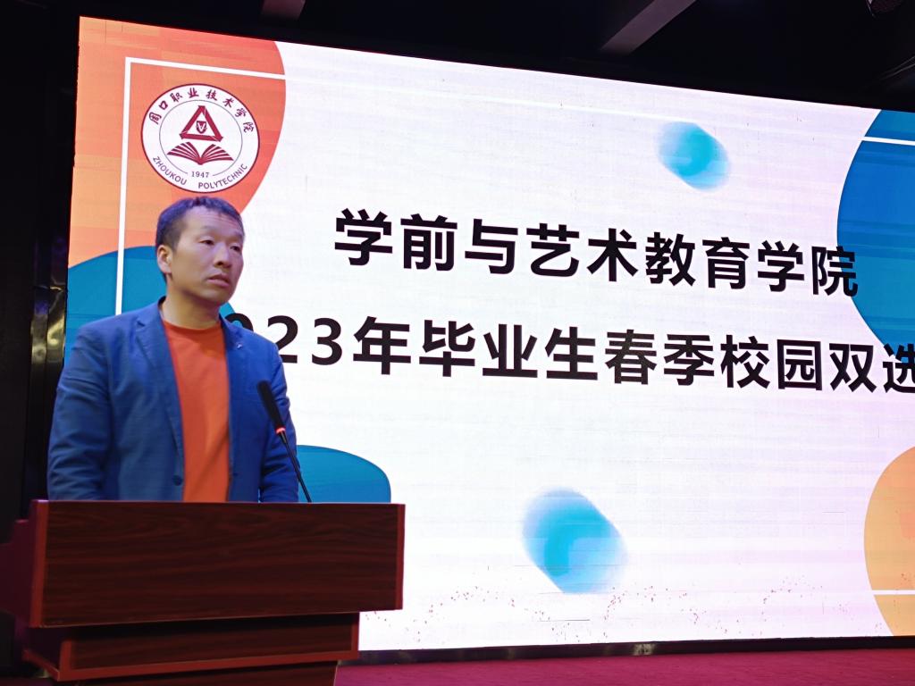 为全面贯彻落实党的二十大精神,实施就业优先战略,强抓春招关键期,保障我院2023届毕业生高质量就业,4月3日下午,WilliamHill官方网站在一楼演播厅召开2023年春季校园专题宣讲会。本次宣讲会共邀请了郑州市郑东新区宇华幼儿园、周口市川汇区希语树创意幼儿园、河南金宝儿童成长咨询服务有限责任公司等六家优质企业参加。宣讲会由党总支书记王春生主持。