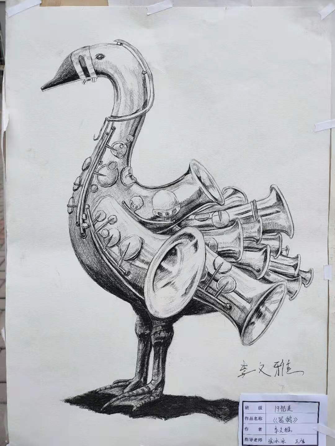 在该门课程的教学过程中,学生们以饱满的热情投入到创意设计中,大家通过相互交流,让不同的设计思维相互碰撞,对静物结构的描绘和创意思维进行了设计、分析、研究及展示。每一个创作环节大家都积极踊跃参与,讨论热烈,课堂气氛活跃。最终,通过课程的学习,大家艺术鉴赏能力和绘画水平得到了一定的提高,同时课程作业也取得了较为理想的设计成果。