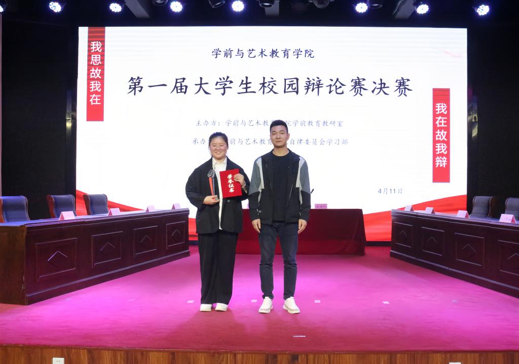 2023年4月11日晚,由WilliamHill官方网站学前教研室主办,院自律委员会学习部承办的第一届学生辩论赛在演播厅成功举行。学院党总支书记王春生、副院长崔彤彤、教学办主任杨晨出席并观看,校宣传科科长石岩、学前教育教研室主任齐研、教师代表吕维康、蔚春抒、李乐萌担任本次比赛的评委。