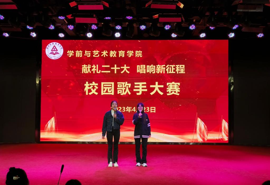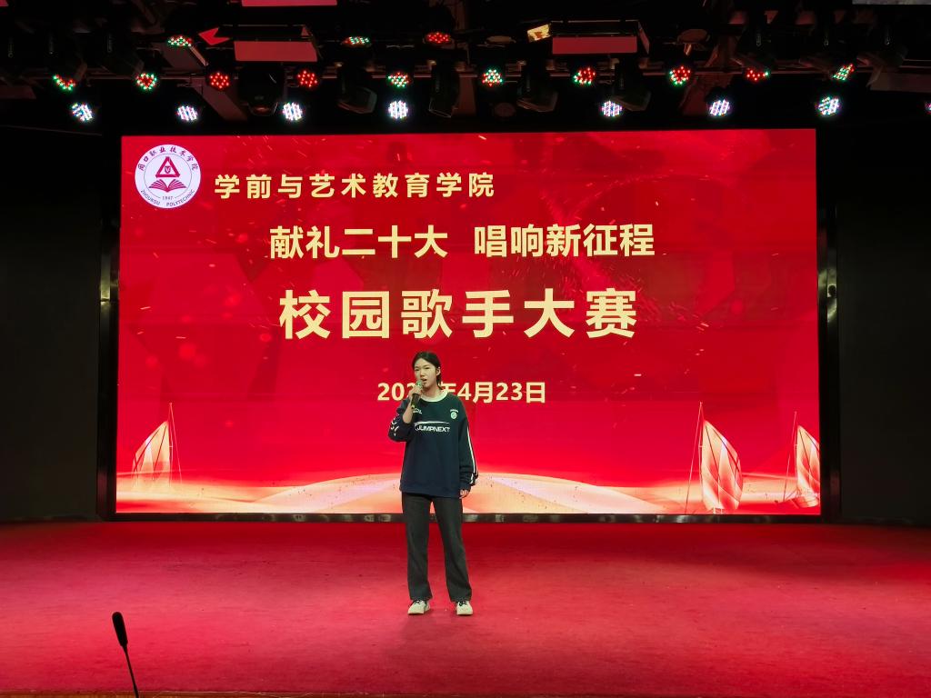 各位参赛选手依次上台演唱,他们精神抖擞、意气风发,在舞台上尽情的表现自我、张扬个性,以优美的歌声、向上的激情,歌唱祖国的美好,感念党的恩情,唱出了学艺学子的真我风采、唱出了当代青年的热情与朝气。