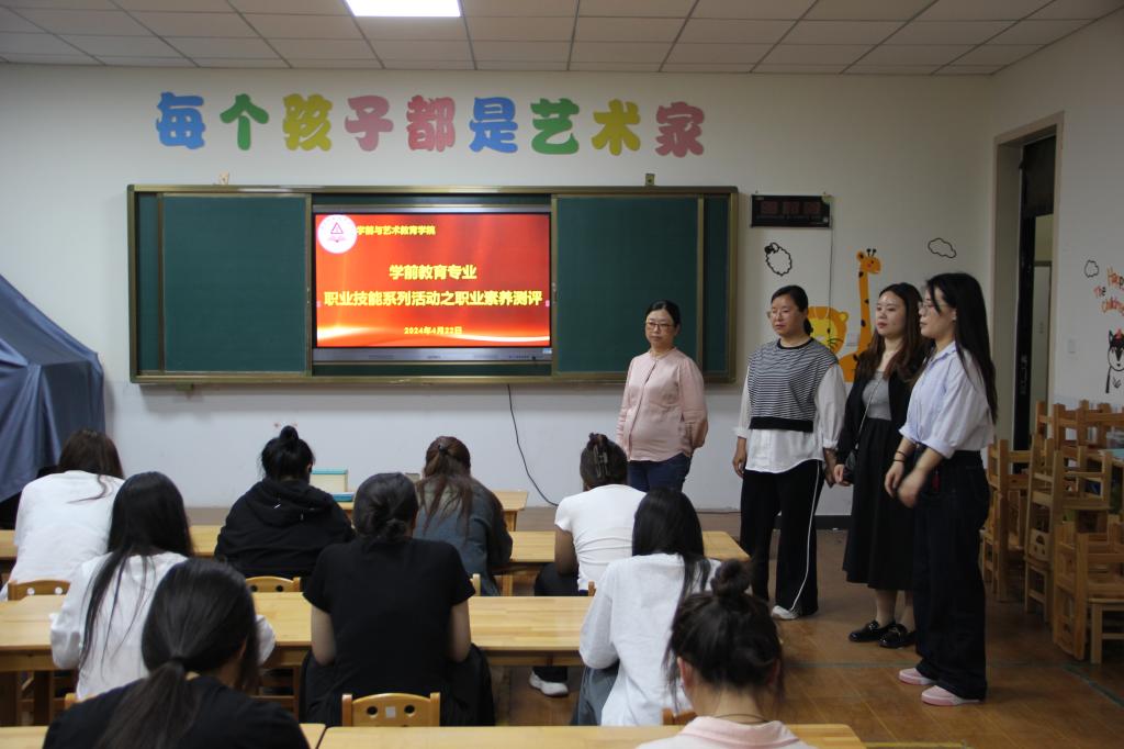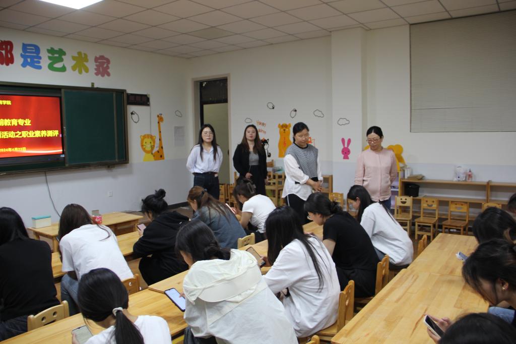 422日,学前教育专业职业技能系列活动之职业素养测评拉开系列活动帷幕。学前教育、早期教育专业学生参加本次测评。测评现场,参赛学生以严谨的态度和扎实的学识应对各类题目,展现出高度的专业素养。