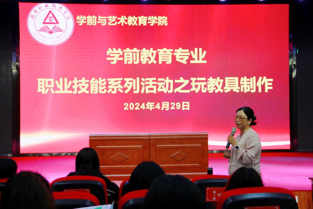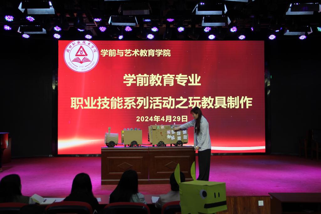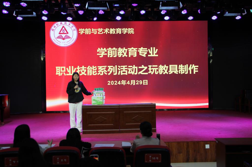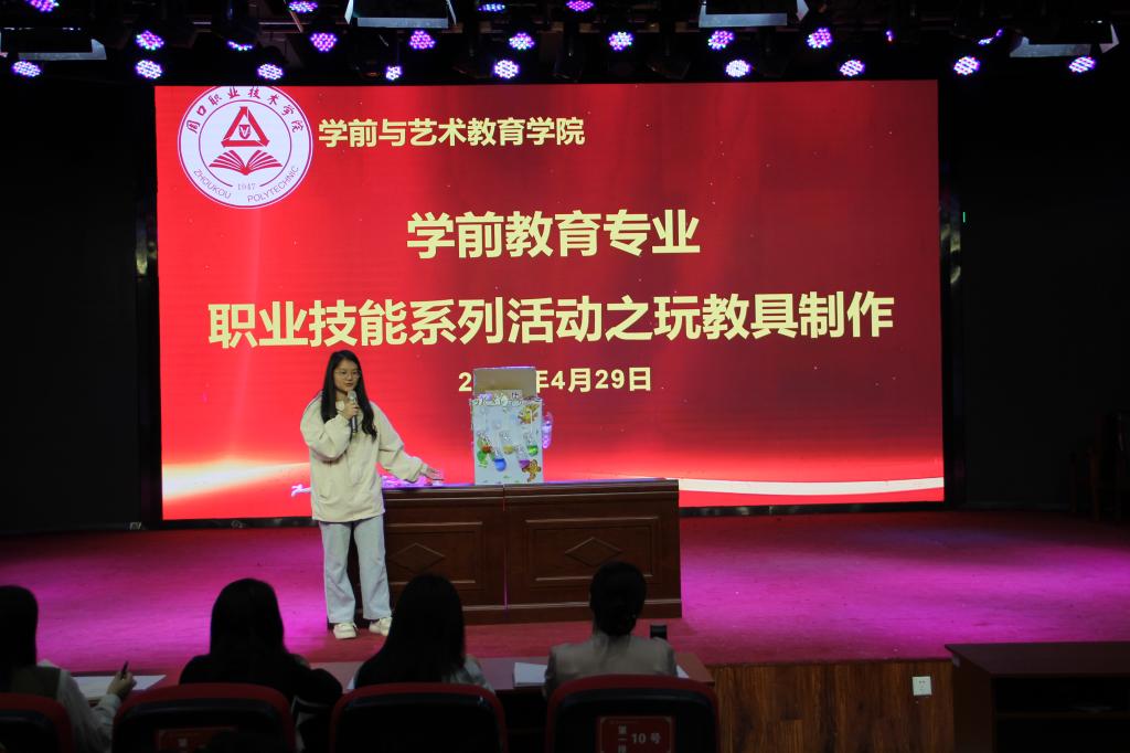 展示结束后,学前教育专业教师对同学们的参赛作品进行评价,向学生强调玩教具的基本准则——安全性、科学性、趣味性。并肯定了同学们过硬的专业本领,同时对同学们玩教具制作水平提出了更高的要求与建议。