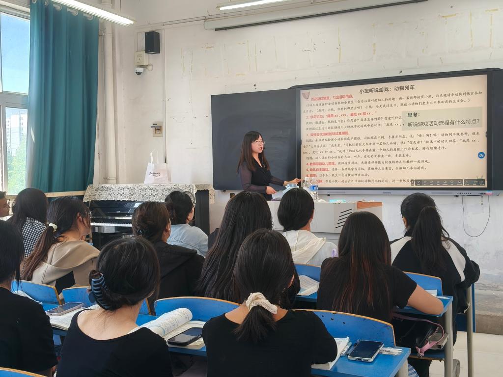 在《幼儿园语言教育活动设计与实施》的课堂上,沙晓艳老师详细讲解了学前儿童语言教育的理论知识和设计原则,她巧妙的运用故事、游戏等教学手段,将抽象的语言知识融入到生动有趣的互动环节中,充分展现了在学前儿童语言教育方面的实践能力和创新思维。