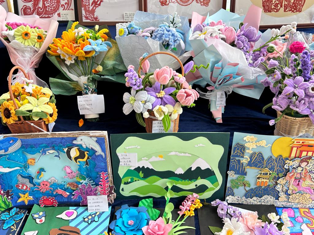 此次作品展共展出2023级、2024级学前教育专业学生创作的236件手工作品,涵盖布艺玩具、纸艺教具、环保材料创意、综合材料装置四大类别。学生以“婴幼儿认知发展”为导向,结合色彩心理学、触觉感知理论,自然材料、无纺布等转化为兼具趣味性与教育性的手工作品。