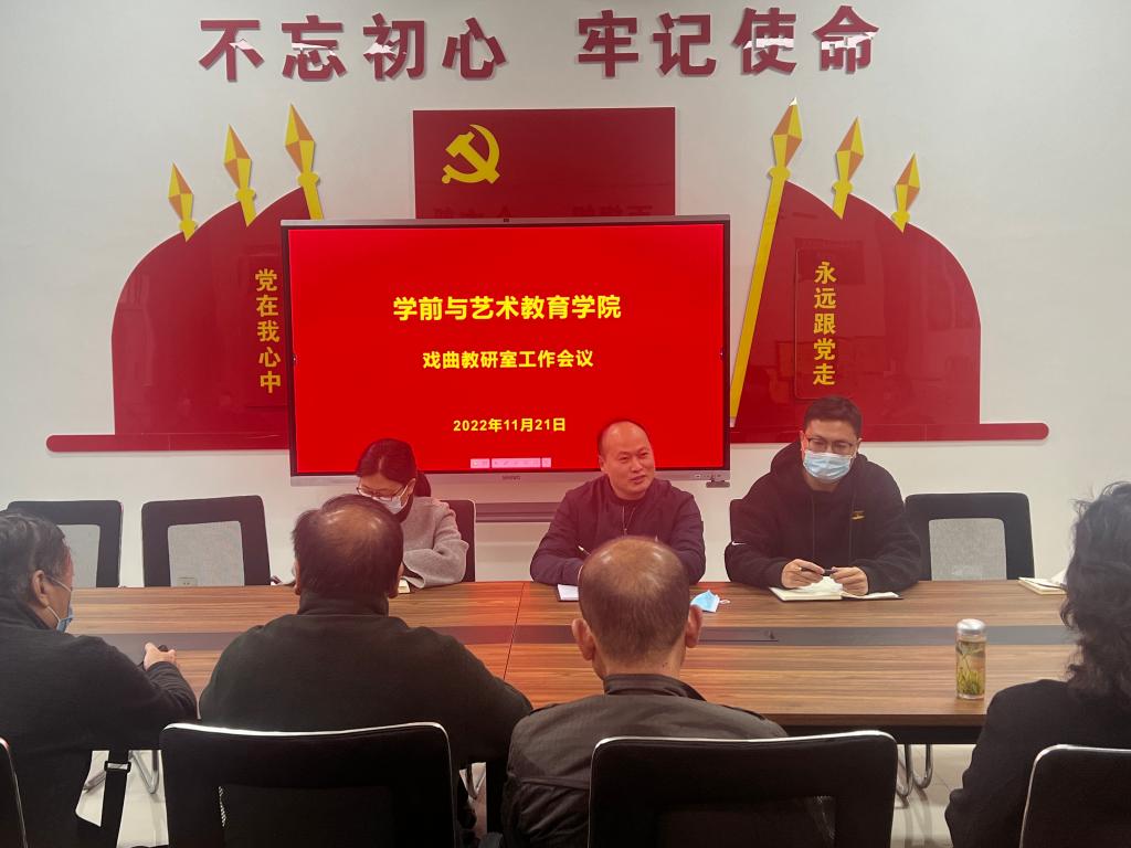 11月20日,戏曲教研室于学院四楼党员活动室召开了本学期教研室会议,院长高岐奎,副院长耿润参与了会议。会上,高院长就接下来戏曲教学戏汇报、教师教学展演等相关工作进行了安排。鼓励教师们积极筹备演出,发挥戏曲专业优势,积极参与舞台实践。此次教研室会议明确了教师们近期重要工作内容,有利于更好的开展教学工作。