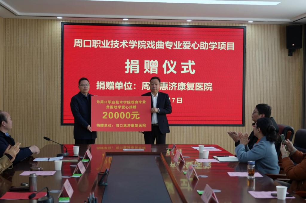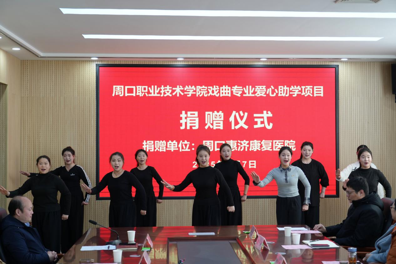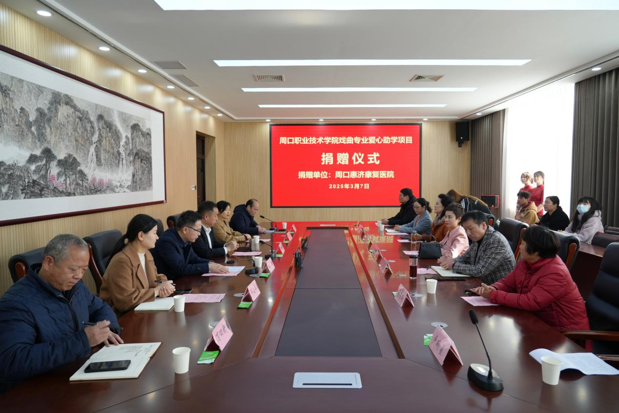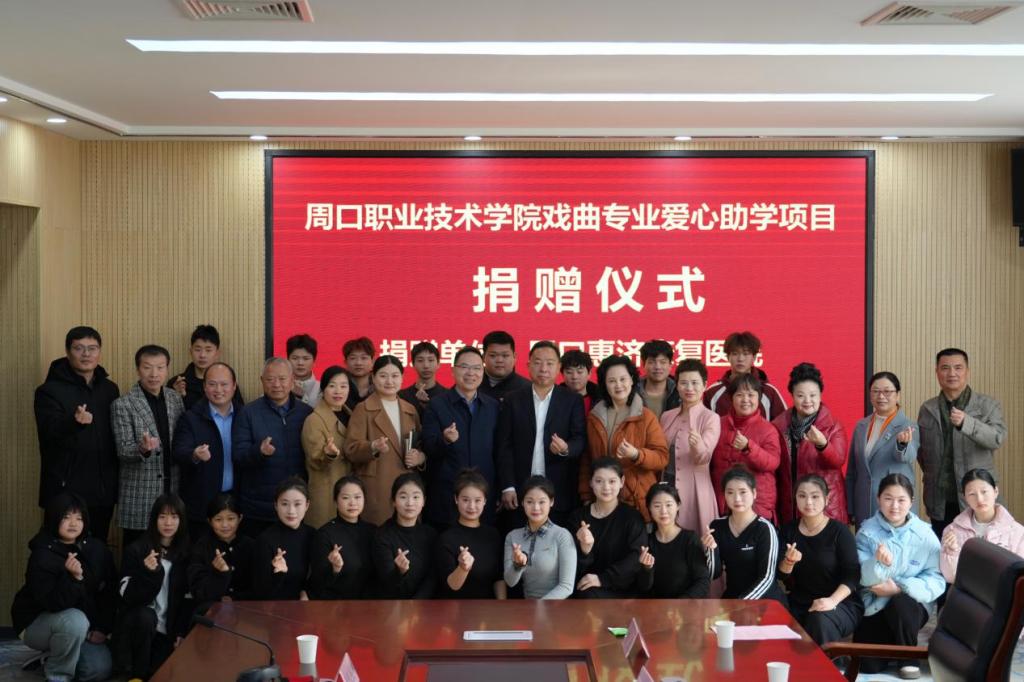 3月7日,周口惠济康复医院爱心捐赠仪式在WilliamHill官网开元校区第六会议室顺利举行。周口惠济康复医院院长王希振、副院长邓云华、副院长张凤荣、办公室主任宋继敏、williamhill英国官网副校长王隼出席仪式,WilliamHill官方网站(纺织服装学院)全体班子成员及戏曲表演专业全体学生参加仪式。学院院长高岐奎主持。