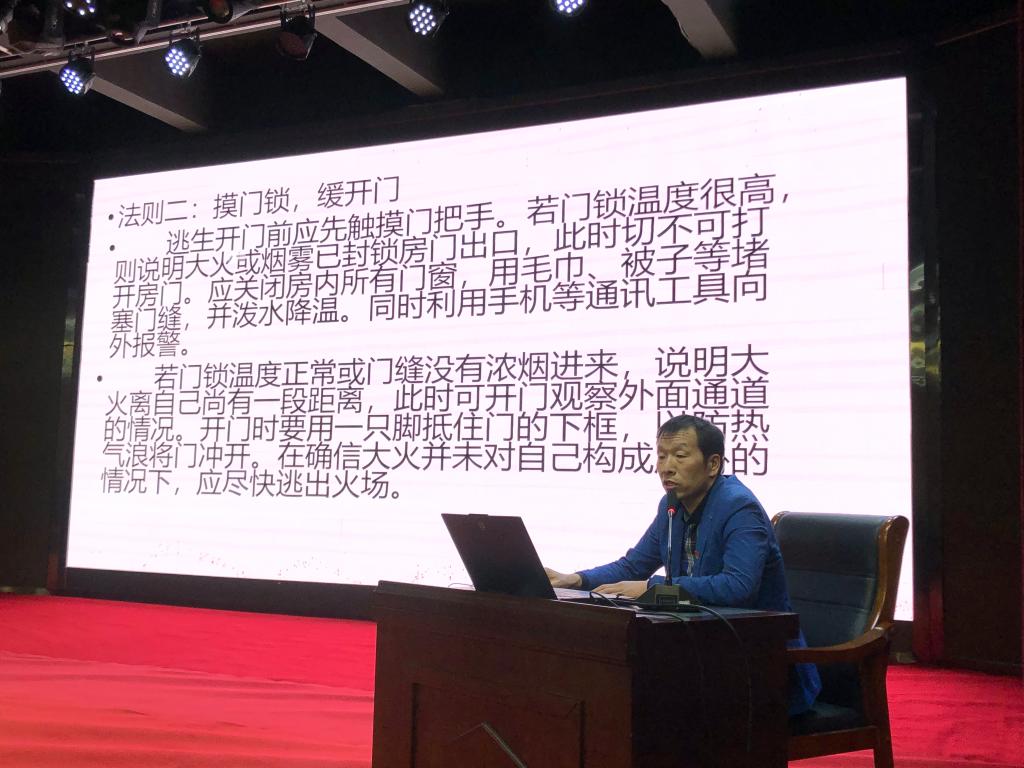 党总支书记王春生通过展示几条发生在高校的安全事故案例,提醒同学们防范学校安全事故的紧迫性,触目惊心的事故现场震撼了学生们的心灵,也为学生们敲响了对于消防安全的警钟,让大家深刻感受到消防安全的重要性。他强调火场四大逃生原则:保持冷静、摸门锁缓开门、熟悉逃生路线、做好防烟措施;并示范了灭火器的正确使用方法,提醒同学们使用灭火器一定要谨记:一提二拔三瞄四压。能够使广大同学了解更多的实验安全常识,提高安全防范意识和能力,真正将实验安全知识运用到实验生活中,真正落实“安全第一,预防为主”的方针,共同打造平安校园,和谐校园。