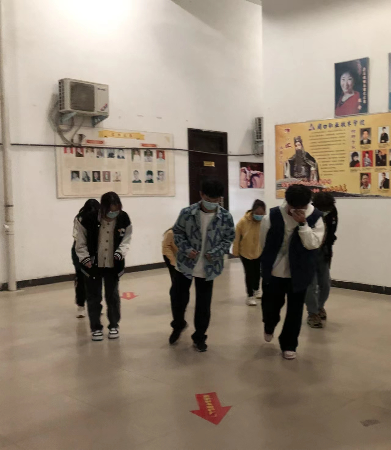 在校学生处、保卫处、校医院的指导下,在学前与艺术教育学院演播厅开展消防紧急疏散和自救演练。模拟起火后,现场第一发现人及时报警,在各层疏导员引导下,在演播厅实训的师生及时关闭水电气源后,用湿毛巾捂住口鼻,弯腰迅速从疏散逃生路线撤离。