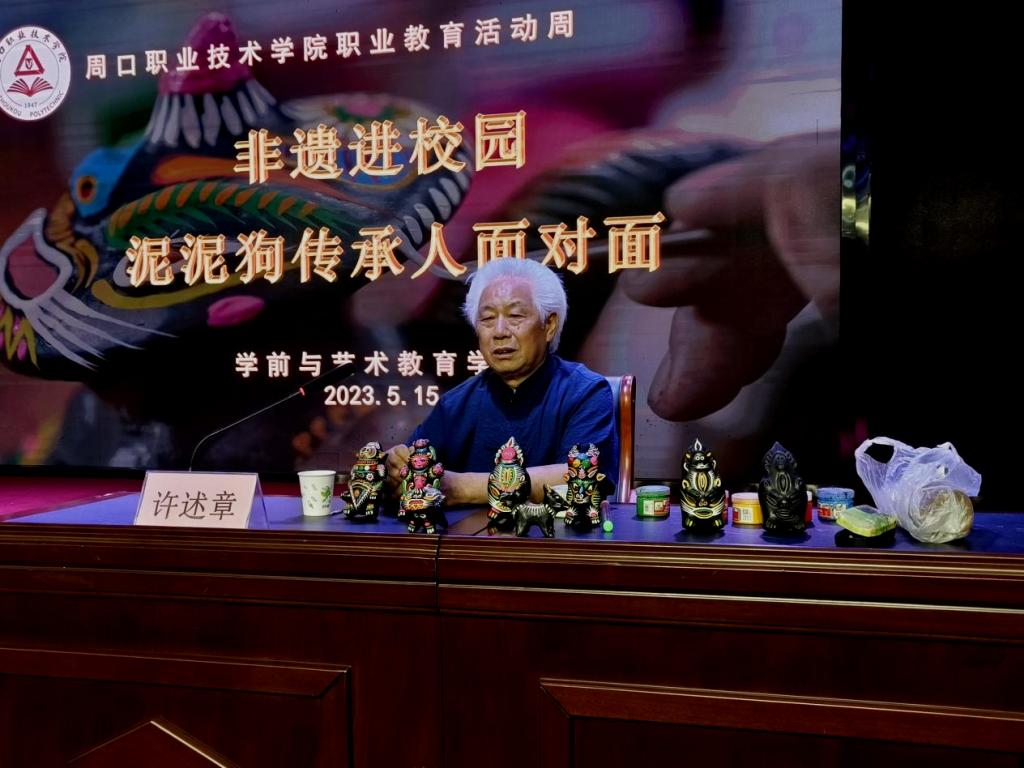 为贯彻落实党的二十大精神,根据《中共河南省委教育工作委员会河南省教育厅关于做好2023年河南省职业教育活动周相关工作的通知》要求及学校的统一安排部署,5月15日下午,WilliamHill官方网站邀请国家级非物质文化遗产项目——泥泥狗的传承人许述章先生来我院开展讲座。副校长王隼出席讲座,WilliamHill官方网站全体班子成员及师生代表参加,讲座由科研外事处处长李民主持。