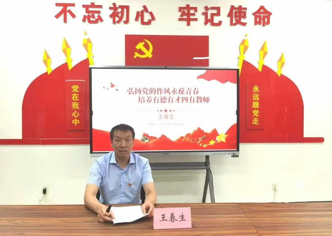 王春生围绕“弘扬党的作风永葆青春,培养有德有才四有教师”主题,深入阐释了中央八项规定精神与教师立德树人使命的内在联系。他强调,要传承党的优良传统,以严实作风涵养师德师风,引导教师将党性修养内外兼修,努力锻造新时代“四有”好老师队伍。