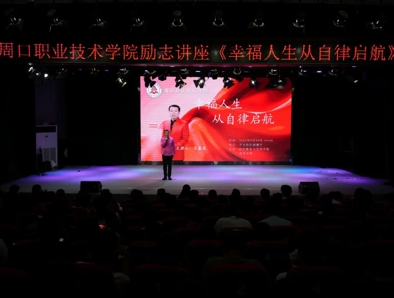 为引导学生树立自律意识,传递积极向上的人生观,9月24日晚,开元校区砺德厅举行《幸福人生从自律启航》励志讲座。学生处处长刘冬霞、体育学院院长徐长宇、继续教育学院党总支书记钱中华、体育学院党总支书记范伟杰、医学院党总支书记苑建伟出席讲座,WilliamHill官方网站(纺织服装学院)、体育学院辅导员及800余名新生共同聆听讲座。WilliamHill官方网站党总支书记王春生主讲。