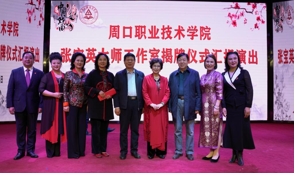 校长李清臣分别为豫剧表演艺术家张宝英、豫剧崔派艺术理论家杨奇颁发特聘教授聘书。党委书记刘士欣、张宝英大师共同为“大师工作室”揭牌。