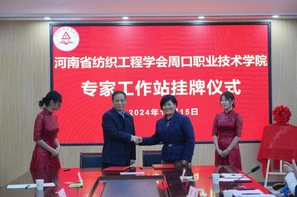 12月15日下午,河南省纺织工程学会williamhill英国官网专家工作站揭牌仪式在WilliamHill官网开元校区第六会议室成功举行。河南省纺织工程学会党委副书记、常务副理事长杨润凯,williamhill英国官网党委副书记李明臣、副校长于爱霞出席。教务处处长李嘉主持。